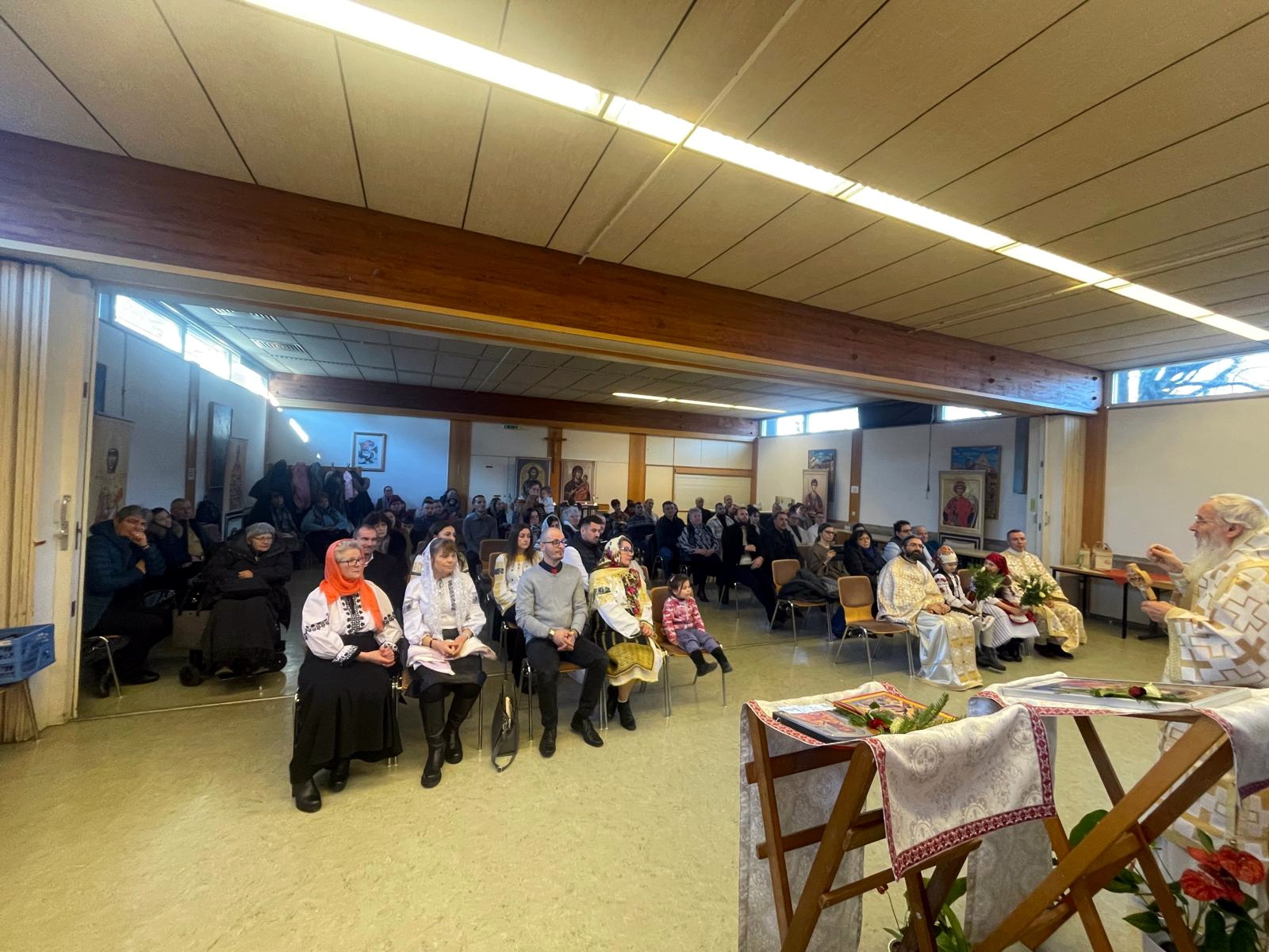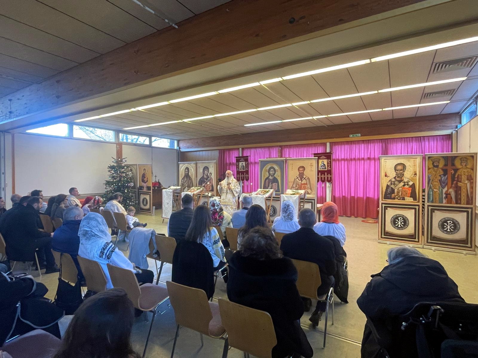 În sala parohiala „St. Rupert” din Königshammer Str. 56, care găzduiește slujbele parohiei românești din sud-estul metropolei Franconiei, Mitropolitul Serafim a săvârșit Sfânta Liturghie arhierească pentru al cincilea an consecutiv de hramul comunității, atmosfera de sărbătoare fiind susținută și de răspunsurile liturgice de la strană și colindele care se cântă în această perioadă a anului.