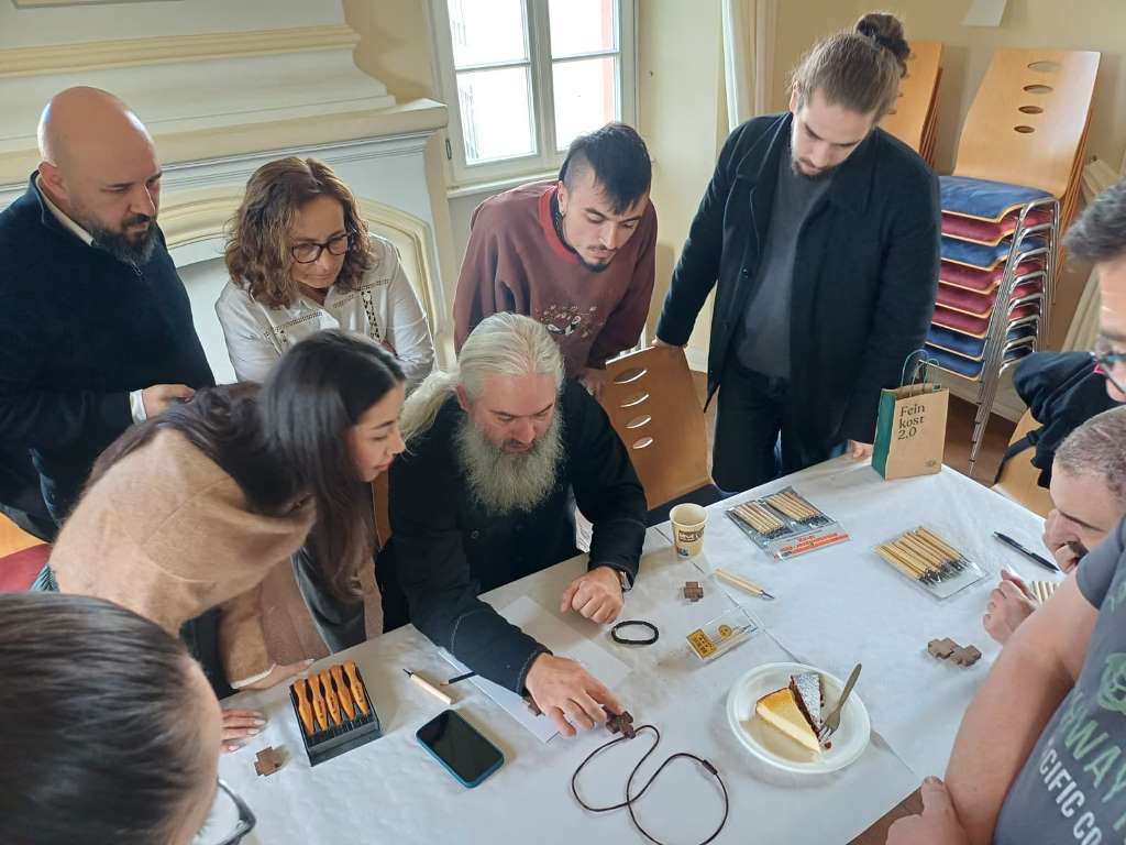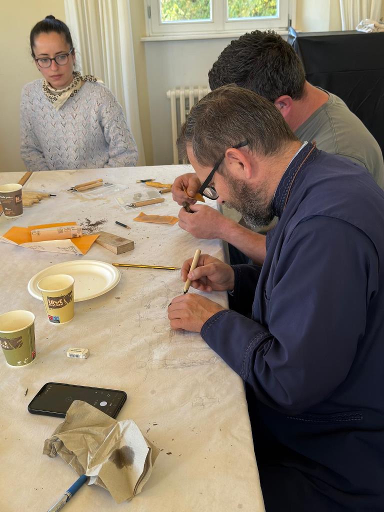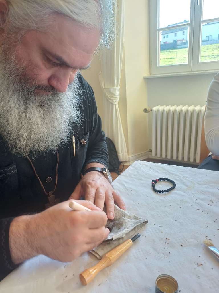 Der Workshop fand am 6. und 7. November in Trier statt und brachte Teilnehmer aus Deutschland, Luxemburg, England und Rumänien zusammen. Neben den praktischen Aspekten der Kreuzschnitzerei gab Pater Savatie auch Einblicke in die Geschichte der byzantinischen Kunst. Er sprach über die verschiedenen Darstellungen des Heiligen Kreuzes im Laufe der Jahrhunderte und über die Theologie des Heiligen Kreuzes. Die Atmosphäre war ungezwungen, und die Teilnehmer hatten die Möglichkeit, Fragen zu stellen und tiefer in die Bedeutung des Heiligen Kreuzes einzutauchen.
