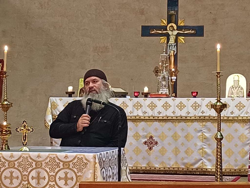 Die letzte Konferenz der Reihe fand am Sonntag, dem 9. November, nach der Heiligen Liturgie in der Pfarrei Trier statt. Dort traf Pater Savatie erneut auf Pfarrer Mircea-Eugen Moldovan und die Gläubigen der Gemeinde.