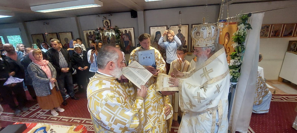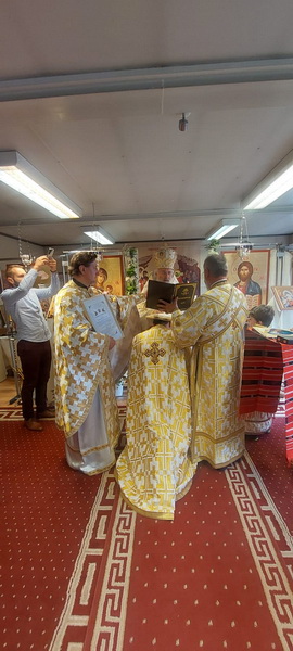 În cadrul Dumnezeieştii Liturghii, mai mulţi credincioşi şi copii, au venit să se împărtășească cu Sfintele Taine iar un grup de copilași au cântat Axionul „Cuvine-se cu adevărat“. La final, părintele Mitropolit a întărit cuvântul Evangheliei, adresând noi cuvinte de îndemn. Totodată, sărbătorindu-se zece ani de la întemeierea parohiei, Înaltpreasfinția Sa l-a hirotesit pe părintele paroh Bogdan Buta întru iconom.