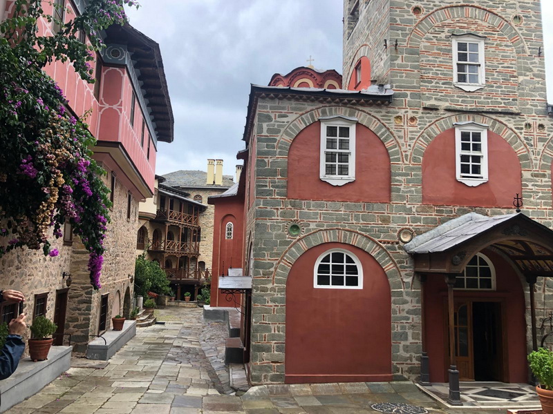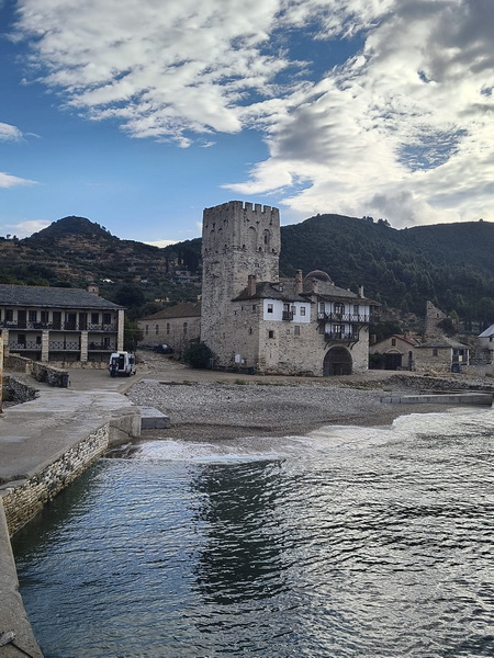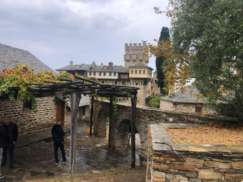 Impresionantă, cu ziduri înalte, puternice, construite pentru apărarea de atacurile dese ale piraților și ale păgânilor, Mănăstirea Dohiariu te lasă fără cuvinte, îndemnându-te la rugăciune smerită și la reculegere. A fost un bun început al acestui periplu, în care au urmat apoi, în prima zi, Mănăstirile Xenofont și Russikon (Sfântul Pantelimon), apoi schitul Sfântul Ilie și cunoscuta Mănăstire Votopedu, unde părintele ieromonah Chiril, viețuitor român al acestei mănăstiri, le-a oferit pelerinilor posibilitatea de a se închina la Brâul Maicii Domnului și la celelalte odoare și Sfinte Moaște din altarul bisericii.