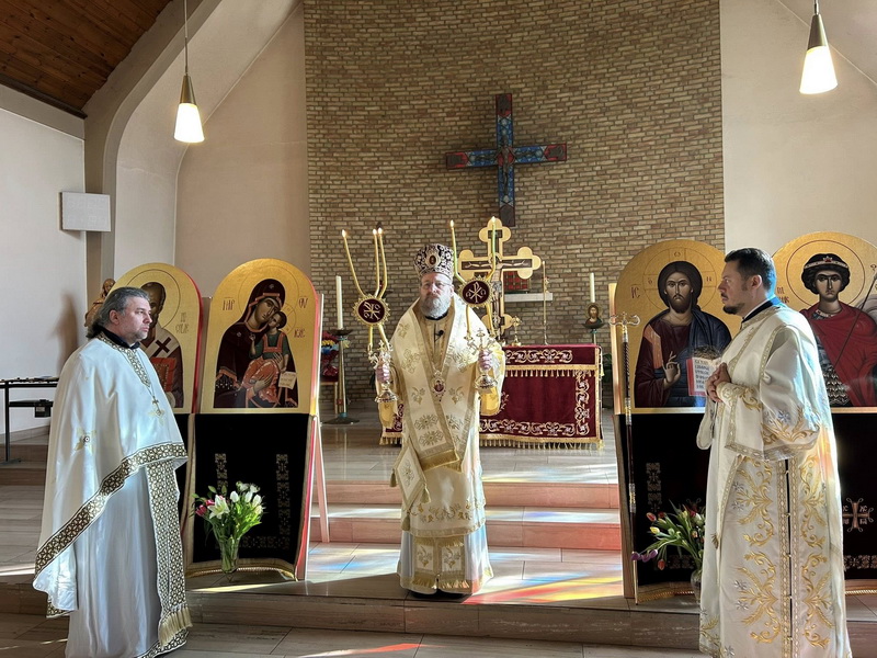 Cu acest prilej, ierarhul a săvârșit Sfânta Liturghie arhierească împreună cu părintele paroh Ionuț Drăgoi și diaconul Ciprian Done. În ciuda distanțelor mari specifice regiunii din nordul Germaniei, la slujbă au participat cu evlavie numeroși credincioși.