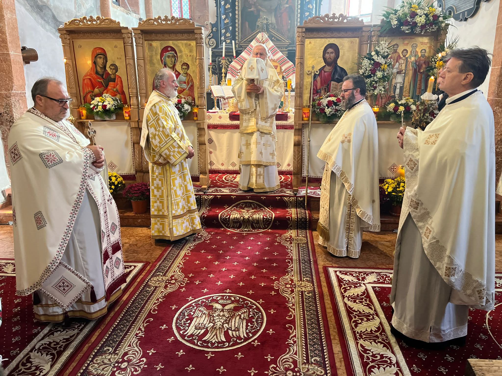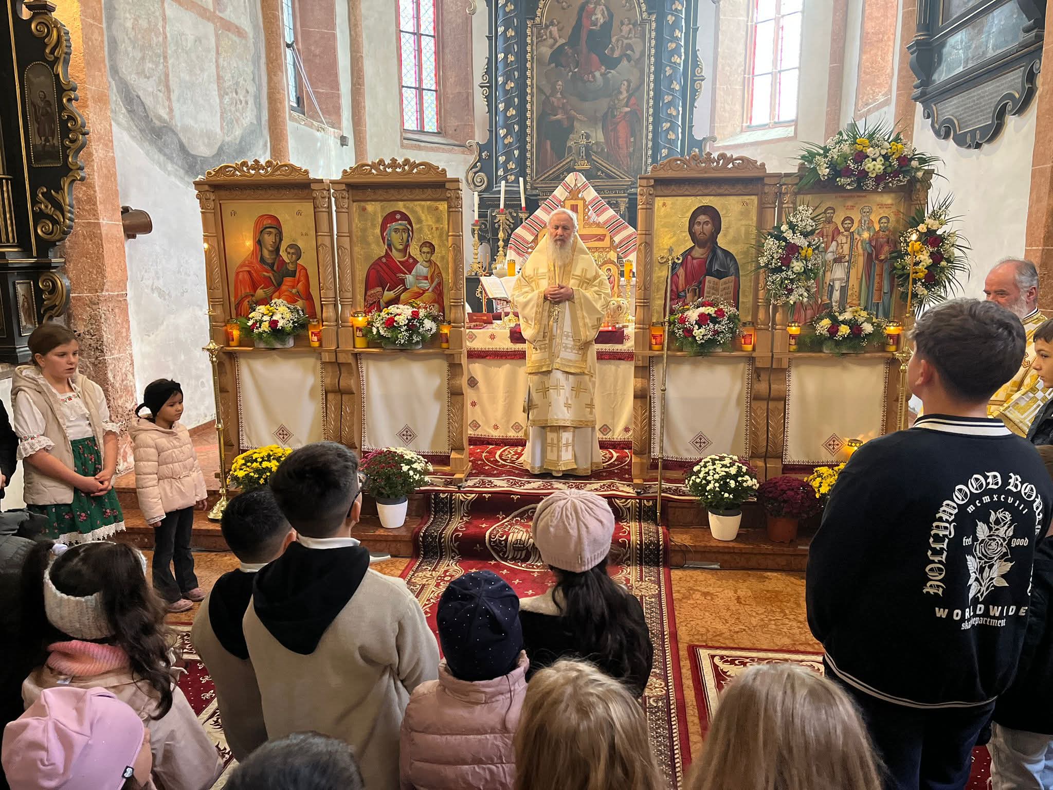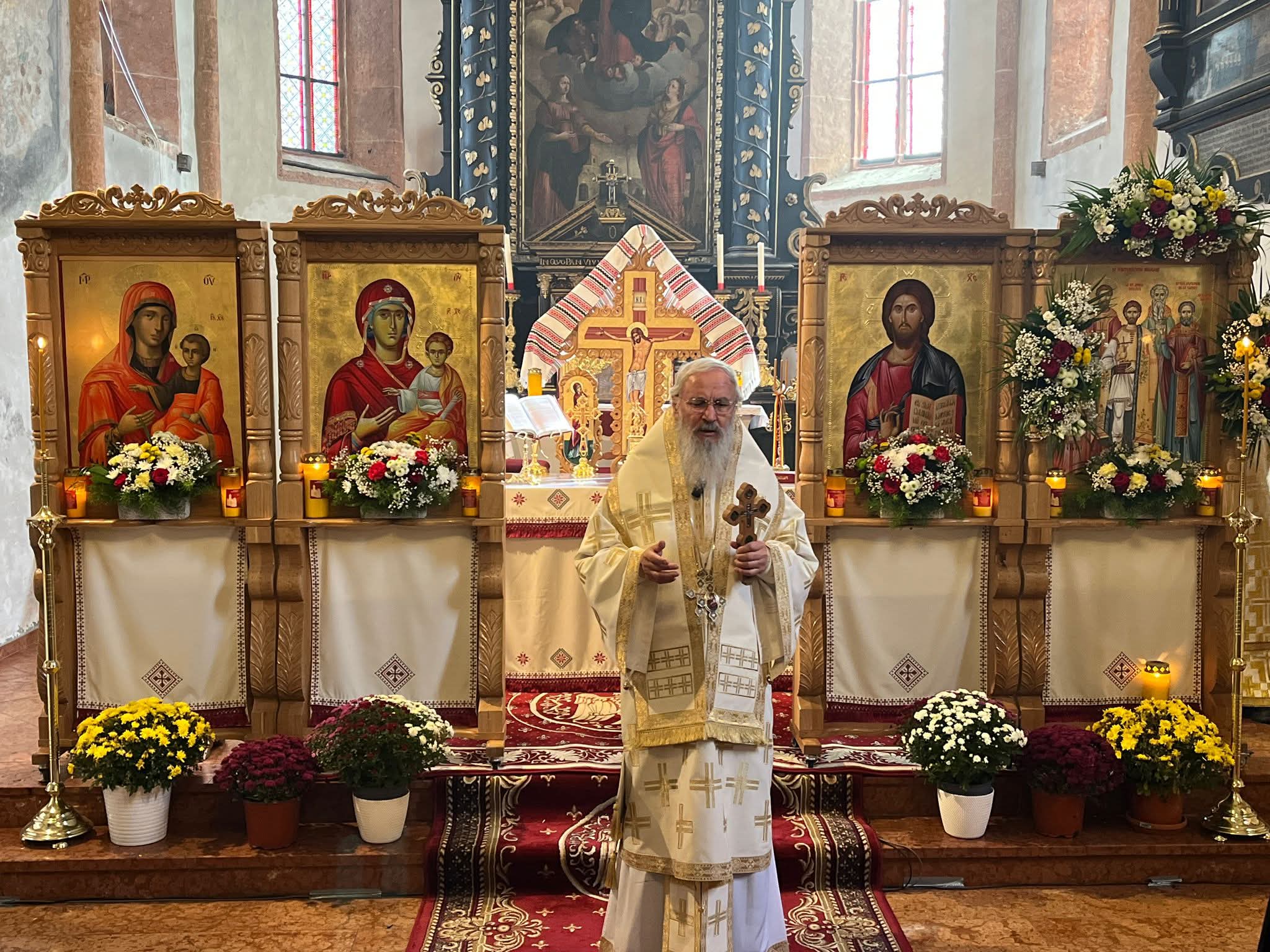 Sărbătoarea a început cu hrana duhovnicească, și anume, participarea la Sfânta Liturghie arhierească, săvârșită în profundă liniște și rugăciune, între zidurile vechi de peste 1000 de ani, ale bisericii Frauenkirche, la poalele munților Alpi din Bischofshofen. Rugăciunea, bucuria comuniunii, împărtășirea cu Sfintele Taine, cuvântul blând și plin de înțelepciune al mitropolitului nostru, vocile calde ale copiilor veniți în număr mare, dragostea tuturor credincioșilor, dar și portul tradițional al iei și al costumului popular, au îmbrăcat biserica cu duhul ortodoxiei autentice, transformând-o într-o mică Românie, în biserica de acasă.
