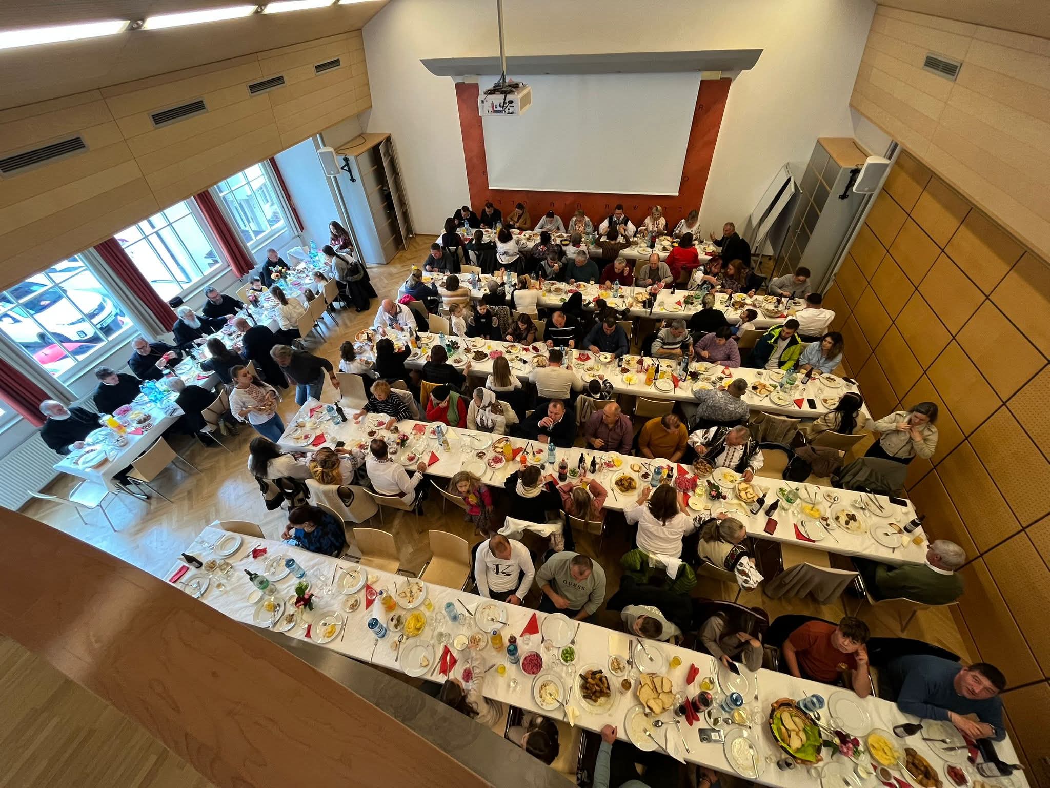 După Sfânta Liturghie, sărbătoarea a continuat cu participarea la agapa tradiționala, unde credincioasele parohiei noastre, au pregătit cu multă jertfă și dragoste hrana cea trupească, de care s-au bucurat toți credincioșii prezenți.