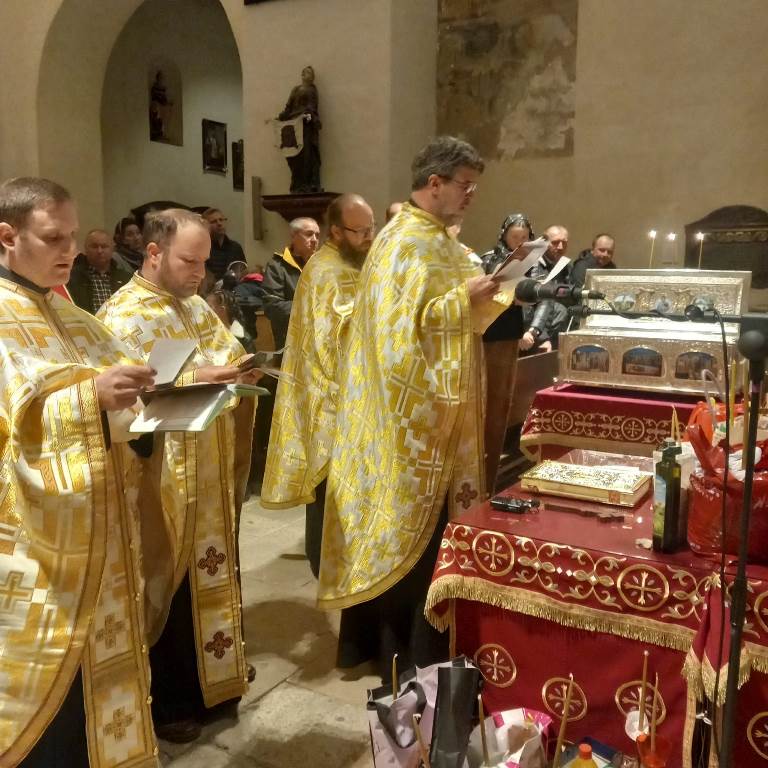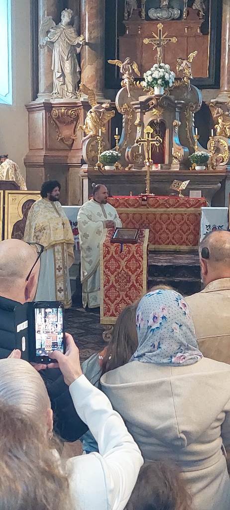 - Duminică, 5 octombrie, a fost ultima zi a pelerinajului. Sfintele Moaște au fost aduse la Gleisdorf, de data aceasta în comunitatea ocrotită de ”Sf. Ier. Iosif cel Nou de la Partoș”. Aici, PC Părinte Cătălin Horvath a oficiat Sfânta și Dumnezeiasca Liturghie în sobor de preoți.