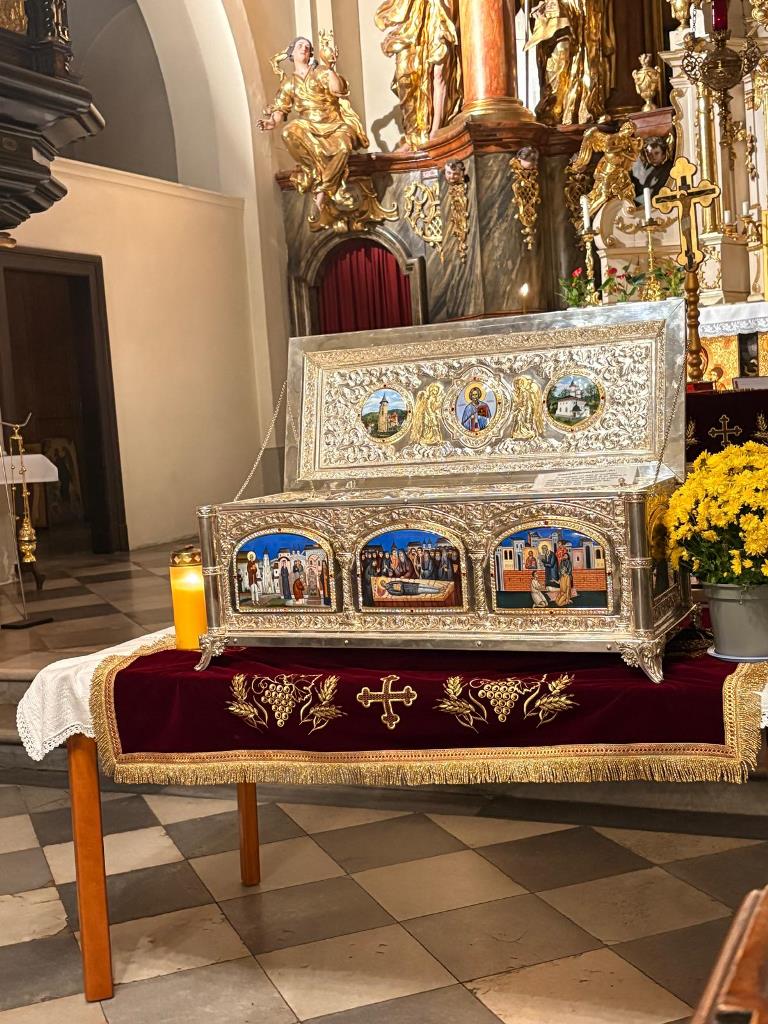 Sfintele Moaște au fost așezate, rând pe rând, spre închinare, în comunitățile ortodoxe românești din zona de sud-est a Austriei.